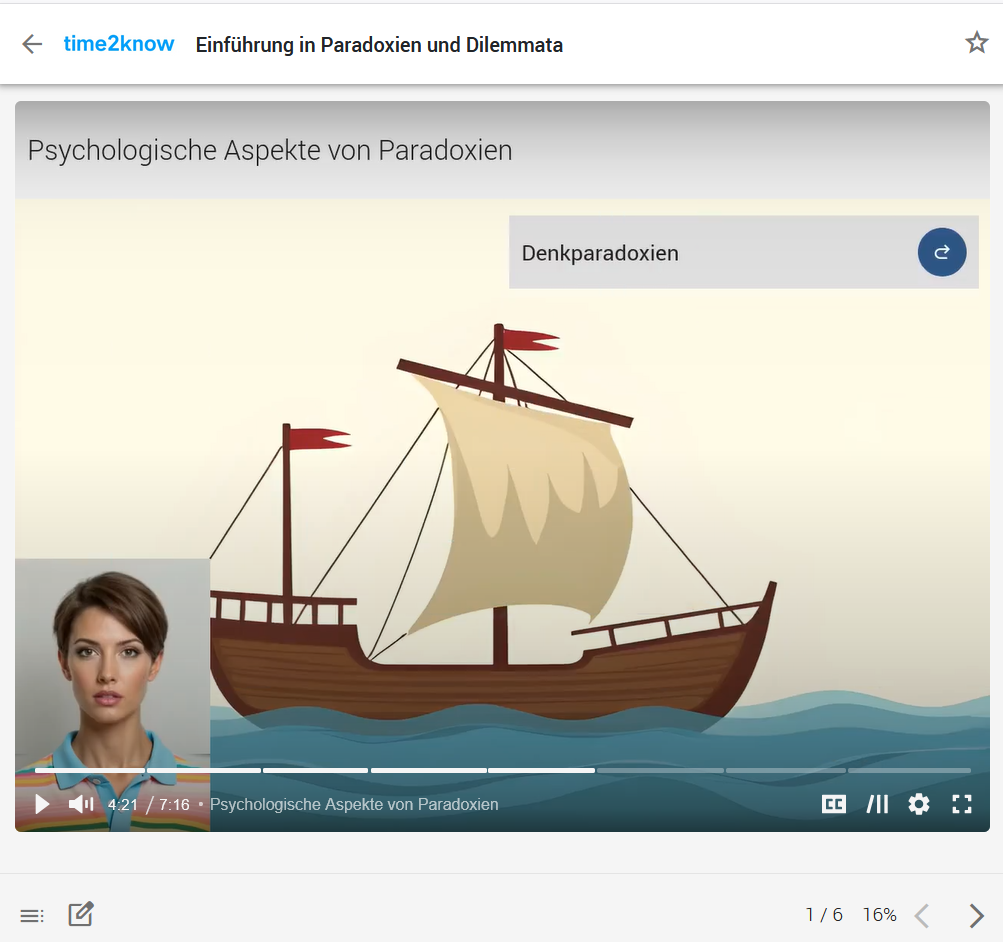 Das Instruktionsdesign wird ergänzt durch viele explorative und interaktive Elemente, die die User zum aktiven Lernen anregen. Alternativ gibt es die Inhalte als Erklärvideo mit Untertiteln und Sprungmarken. Persönliche Notizen und Bookmarks auf jeder Seite helfen den Lernenden dabei, sich die Inhalte anzueignen und besser zu behalten. Studien und die Erfahrung aus der Praxis zeigen, dass dieser Mix aus angeleitetem und freiem Lernen im E-Learning besonders wirksam ist.