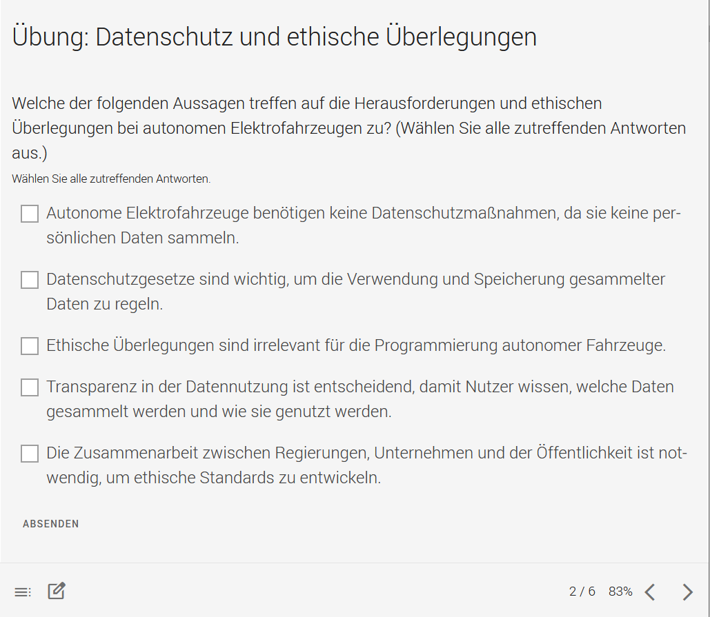 Die Online-Kurse sind in den Standards SCORM bzw. xAPI verfügbar und unterstützen die zugehörigen Reports und Analytics-Funktionen.